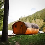 Mountain Cabin By The River - Base Camp Medvedin comprend une salle de bains avec une douche. Des serviettes sont également fournis pour votre confort.